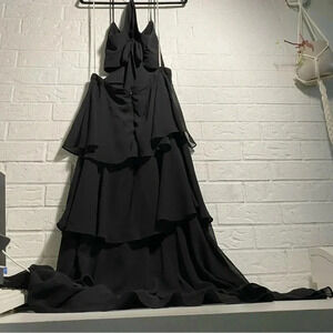 LuLu’s Tiered Black Cut-Out Dress Size Large Romantic Formal Gothic Bridesmaid