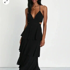 LuLu’s Tiered Black Cut-Out Dress Size Large