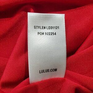 LuLu's V-Neck Bell Sleeved NWT Red Dress Sz L. Halter style button enclosure around the neckline. 100% polyester for both the dress and its lining. Hand Wash. Measurements in the pictures. Please let me know if you have any questions. Thanks for looking!