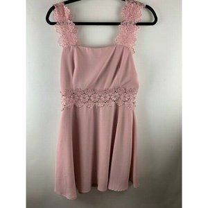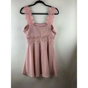 LuLus Womens Size Large Dress Dusty Pink Lace Fit N Flare