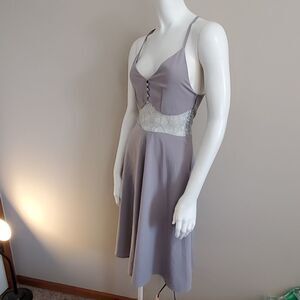 LuLu's Gray Dress with Lace Cut Out & Buttons (XS)