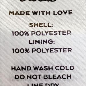 Hand Wash Cold. Do Not Bleach. Line Dry. Iron Low Heat.