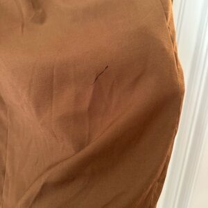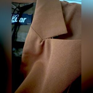 Has tags, but has a small mark on the back of the coat- pictured. Also loose threads on left side collar.