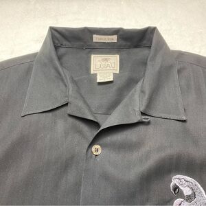 Luau Black 100% Silk Short Sleeve Button Down Embroidered Shirt Size Large