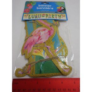 Luau Party Banner Pink Flamingo Parrot 7 Feet Glitter Garland Beach Pool Coastal