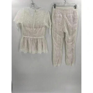 Luba by Hannah Payne Ivory Mesh Lace Peplum Babydoll Blouse SZ 0 Pants Size 4