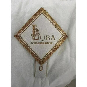 This beautiful Luba by Hannah Payne pant set is perfect for any occasion, whether it's a summer party or a cocktail event. The ivory lace fabric is breathable and lined, ensuring a comfortable fit. The peplum style blouse has a round neckline and casual short sleeves, while the pants are slim and have a zip closure. This designer statement piece is a size 0 blouse and size 4 pants, and features accents of lace and a solid pattern. The garment care instructions are dry clean only, and it is made of a cotton/rayon silk lining material. This pant set is a must-have addition to any wardrobe, and is perfect for those who want to make a statement.