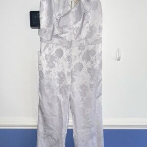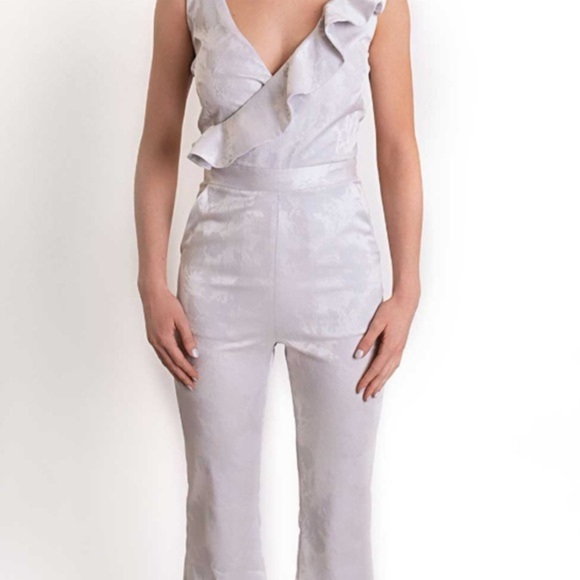 Step out in style with this elegant light gray jumpsuit. Featuring a chic ruffled design, it's perfect for any occasion.
