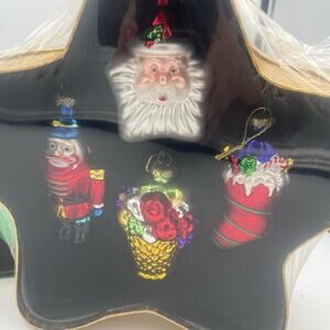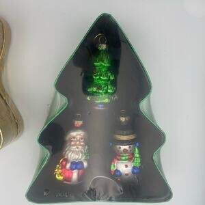 Lubeck Two Sets Hand Painted Blown Glass Christmas Ornaments Keepsake Boxes