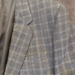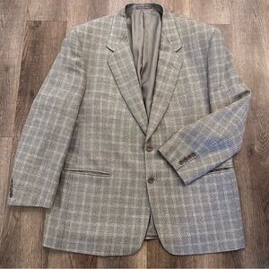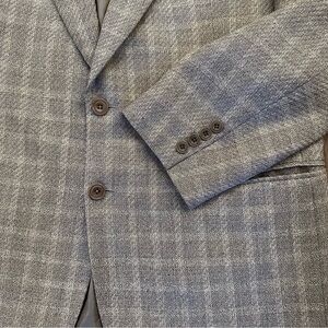 Lubian Mens Grey Tan Windowpane 35% Silk 65% Wool 2 Button Sport Coat 46 Italy