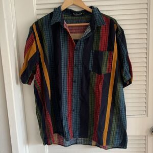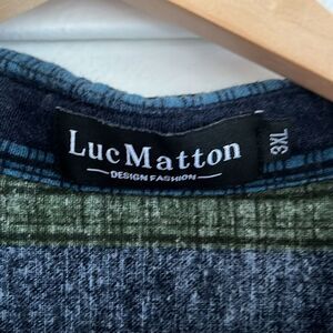 Elevate your wardrobe with this stylish men’s Luc Matton Multi Color Button Down. Crafted with attention to detail, this shirt features a vibrant multi-color design that adds a pop of personality to any ensemble. The button-down style offers versatility for both casual and semi-formal occasions. Perfect for adding a touch of flair to your look, this Luc Matton shirt is a must-have statement piece.