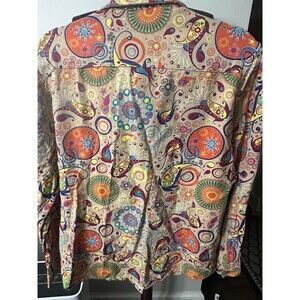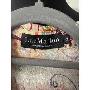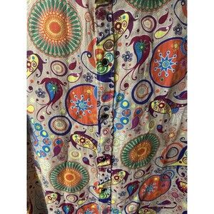Luc Matton Unisex XL Cotton Linen Blend Colorful Button Down Shirt Fun Print EUC