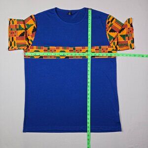 Luc Matton XL Blue Kente Cloth Dashiki Style Tee African Heritage Tribal Print