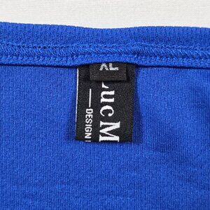 Bold and vibrant, this Luc Matton Design men's XL t-shirt features a royal blue base with colorful African-inspired Kente patchwork accents on the sleeves and chest stripe. Made from lightweight, breathable polyester, it’s perfect for streetwear, festivals, vacations, and casual everyday styling. Pre-owned and in excellent condition.