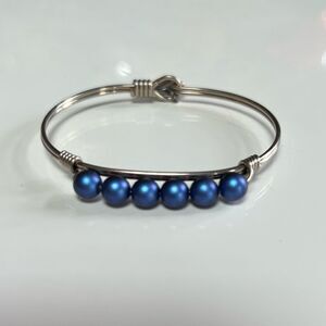 Luca + Danni Crystal Pearl Bangle Bracelet Blue Lapis Iridescent Dark Blue