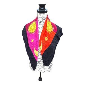 Luca Emanuele Silk Sun & Moon Scarf Celestial Goddess Black Pink Boho Y2K Italy