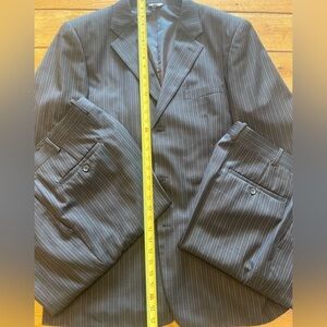 Luca Rossi Mens 3 Button Pin Stripe Wool 36 x 36 Regular Black Grey Pin 2 Slacks