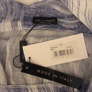 Luca VANUCCI Blue and White Ocean Wave Linen Sleeveless Top Size L NWT