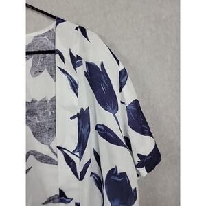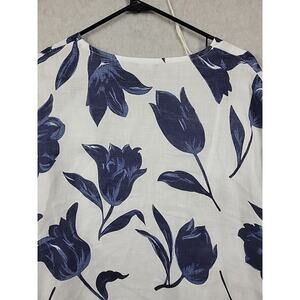 Luca Vanucci Italy Linen White Floral SS Open Front Coastal Cardigan Women's XL