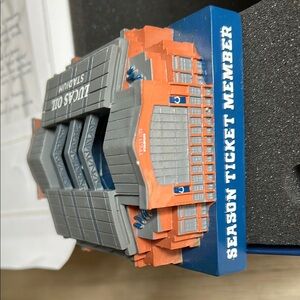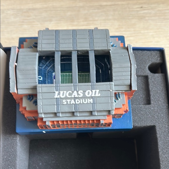 Detailed model of Lucas Oil Stadium. Features gray and blue colors.