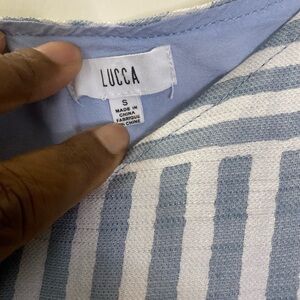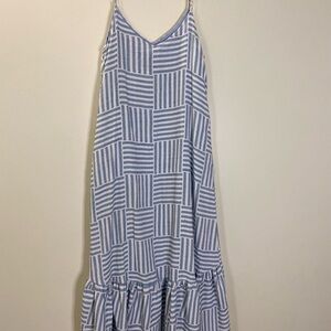 This charming sundress by Lucca Couture features a playful ruffled and tiered design, perfect for casual or resort wear. The sleeveless dress showcases a spaghetti strap v-neckline, enhancing its breezy and relaxed style. Its high low hemline adds a touch of modern flair, making it a versatile addition to any summer wardrobe.