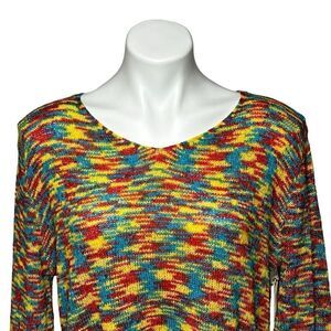 Lucca Couture NWT rainbow space dyed intarsia knit crop sweater size M. Style LCS0281. 100% acrylic. Hand wash cold. Length 19” front 21” back. Chest 24”.
