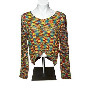 Lucca Couture NWT rainbow space dyed intarsia knit crop sweater size M