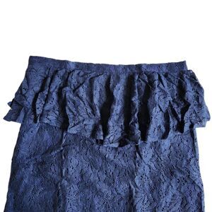 Lucca Couture Navy Blue Lace Ruffle Peplum Mini Skirt Sz M
