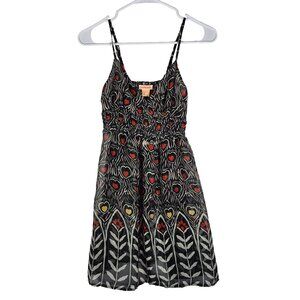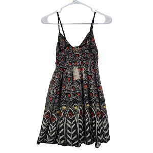 🔥Tags- sheer, peacock feather print, layering, swim cover-up, black print, spaghetti strap, sundress