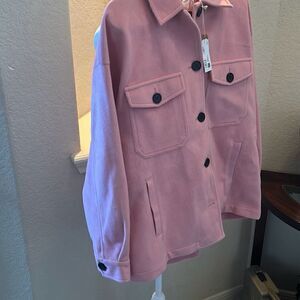 Lucca Couture Womens Size Medium Haines Pink Shacket Button Front Pockets NWT