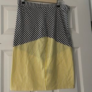 Lucca Couture medium polyester navy, yellow, and white stripe skirt