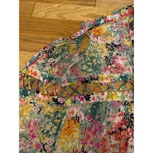 Lucca Couture women's multicolor floral cut out button front sleeveless blouse S