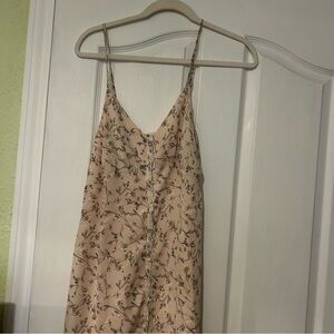 Elegant floral spaghetti strap dress in a soft cream color. Perfect for casual outings or special occasions.