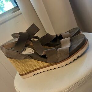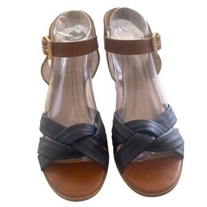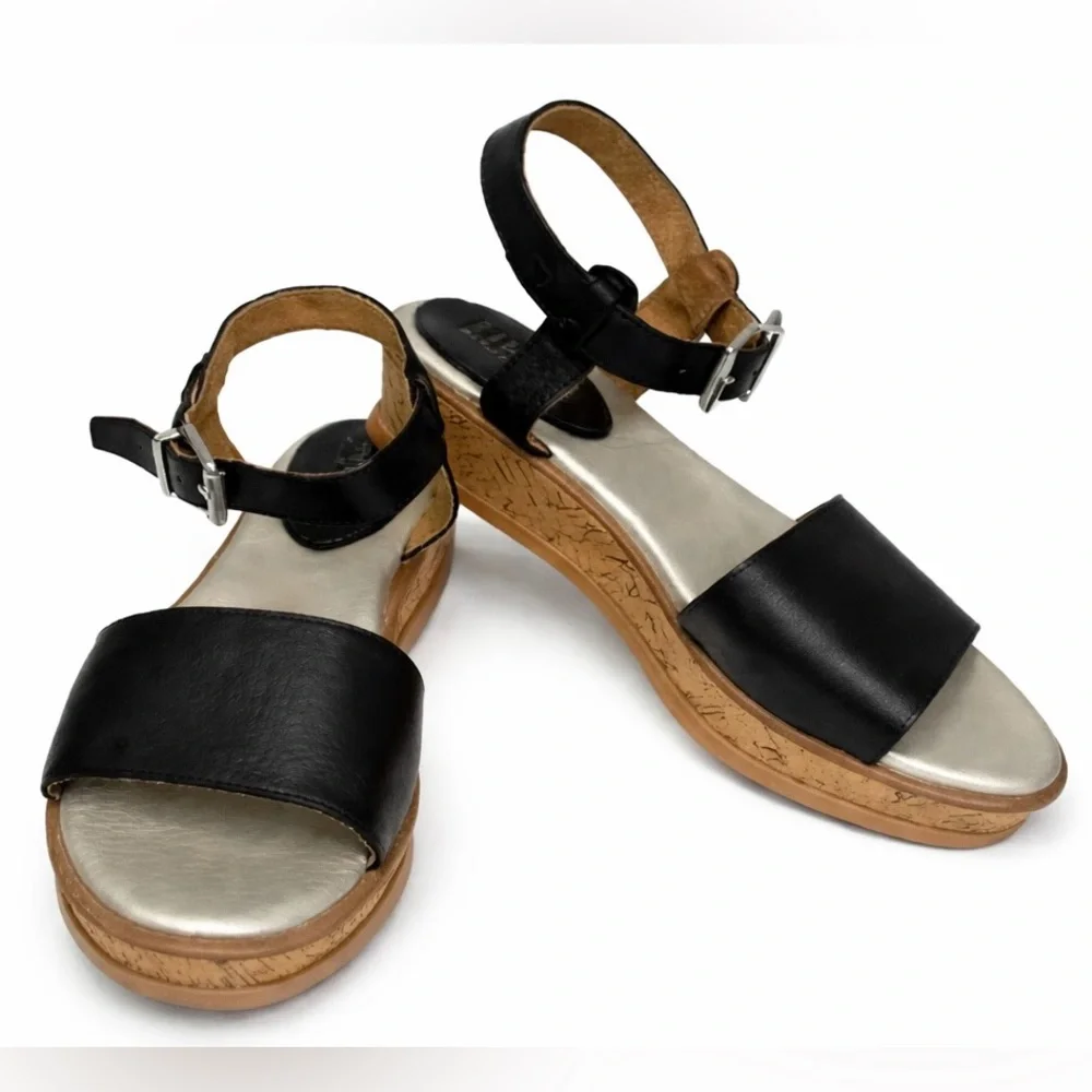 Lucca Lane Black Leather Cork Wedge Sandals Ankle Strap Comfort Size 9