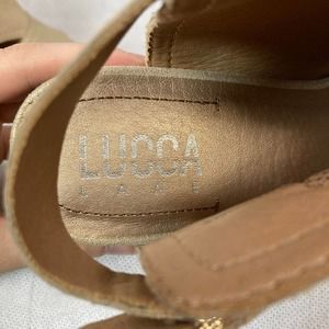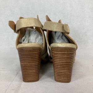Lucca Lane Sandals Womens Sz 10 Gold Leather Heel Stack Heel New Open Toe
