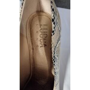 Lucca Lane Shoes Womens Size 9.5 Snakeskin Pointed Toe Stiletto Heels Beige Black
