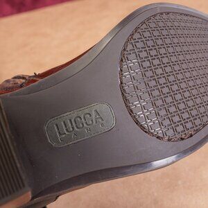 Lucca Lane Wmn Marella Brown Black Leather Riding Equestrian Buckle Boots sz 6.5