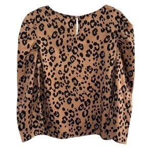 Lucca Leopard Print Satin Blouse Long Sleeve Top Women Sz Small Brown Black NWOT