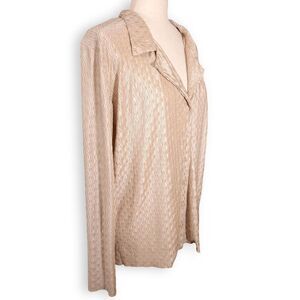 Lucca Metallic Gold Button-Down Pajama Blouse SZ Medium Collared Shiny Textured