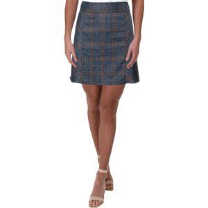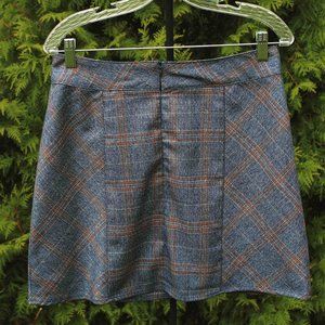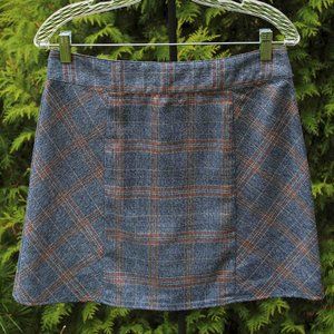 Lucca pretty denim-blue & burnt-orange plaid panel mini skirt with hidden back zipper