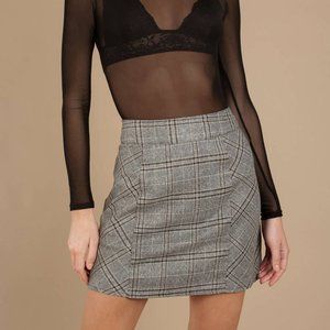 Lucca Pretty Denim-Plaid Panel Miniskirt NWT