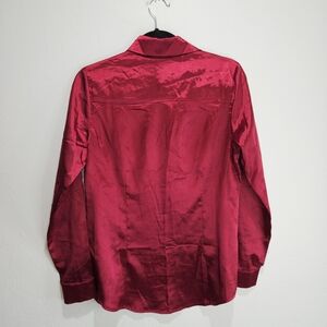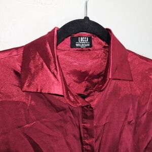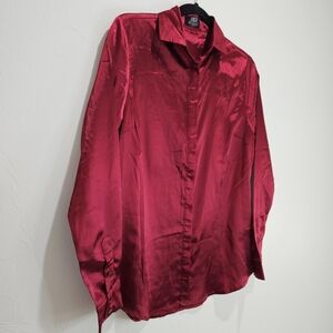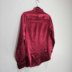Lucca Wildfang Satin Shirt Button Up Long Sleeve Blouse Maroon Red Silky Small