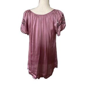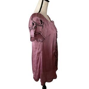 Lucca mauve openwork embroidery short sleeves blouse women Medium