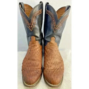 Lucchese 1883 Full Quill Ostrich Western Chocolate Peanut Brittle Boots 9D