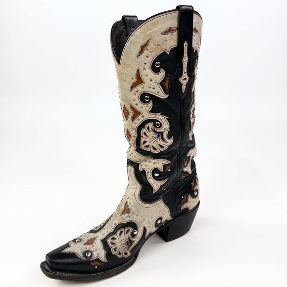 Lucchese 1883 Handmade Studded Fiona Black + Neutral Western Boots