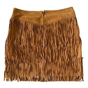 Lucchese Annabelle Lamb Leather Fringe Skirt Cinnamon Tan Suede Size M NWT