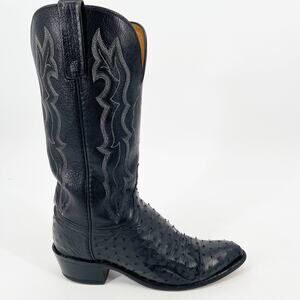 Lucchese Black Ostrich Leather Pointed Toe Western Stitched Cowgirl Boot