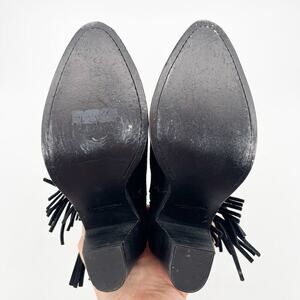 Lucchese Black Suede Sofia Whipstitch Fringe Western Cowgirl Ankle Boot size 7