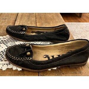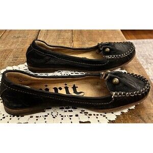 Lucchese Boot Co Women's Button Loafer Moccasins size 7.5 M Black Leather Shoes