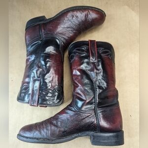Lucchese Boots men's size 8D Exotic Genuine Black Cherry Smooth Ostrich classic Western cowboy boots.